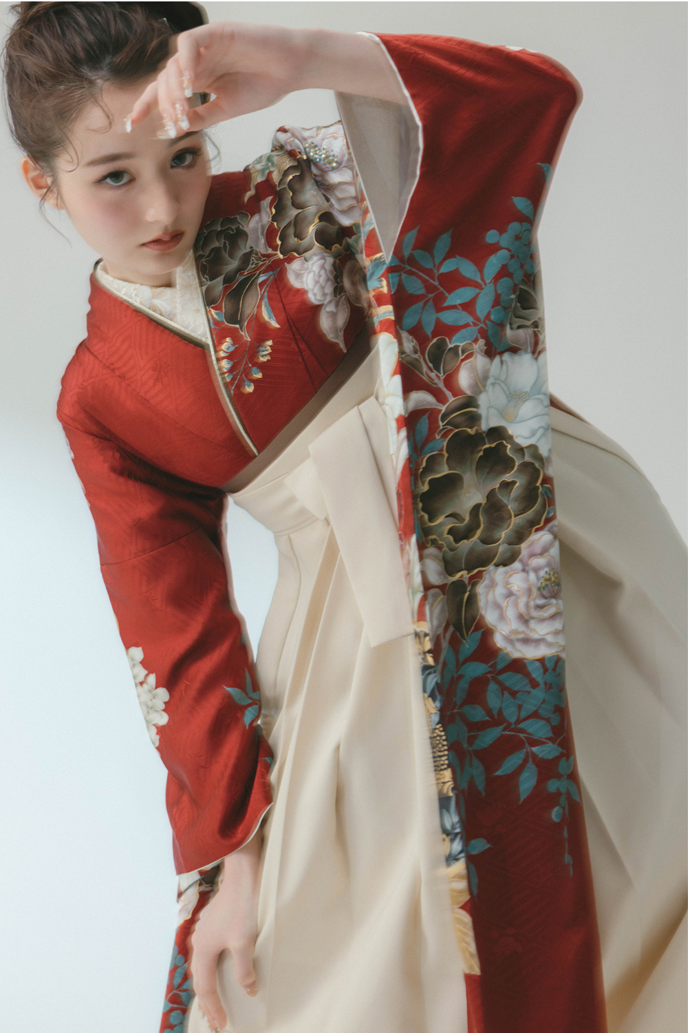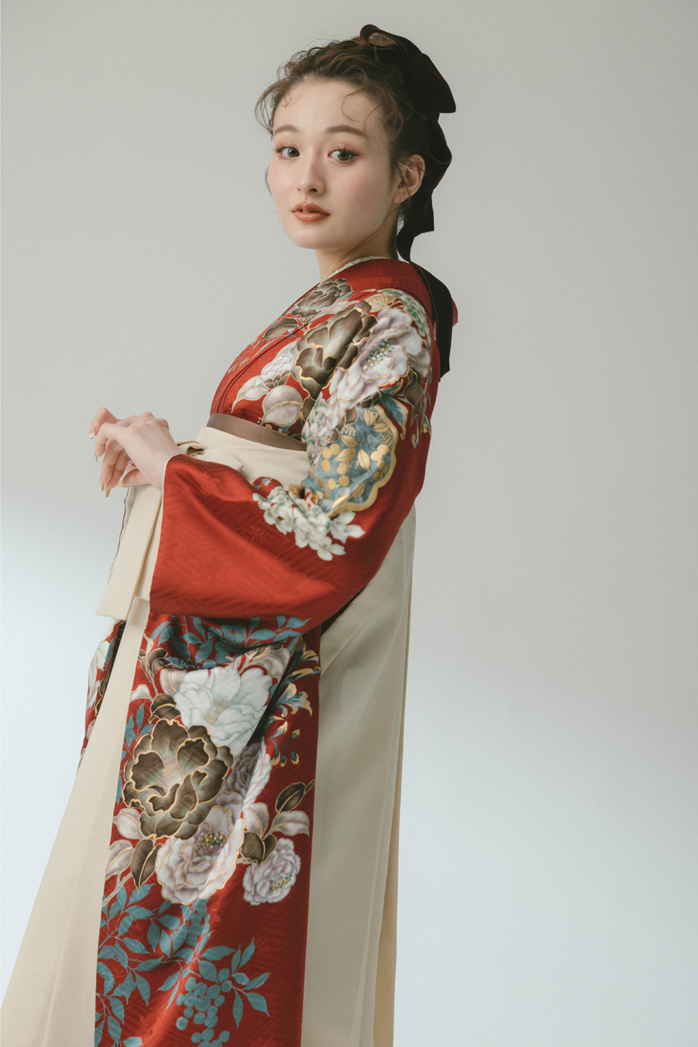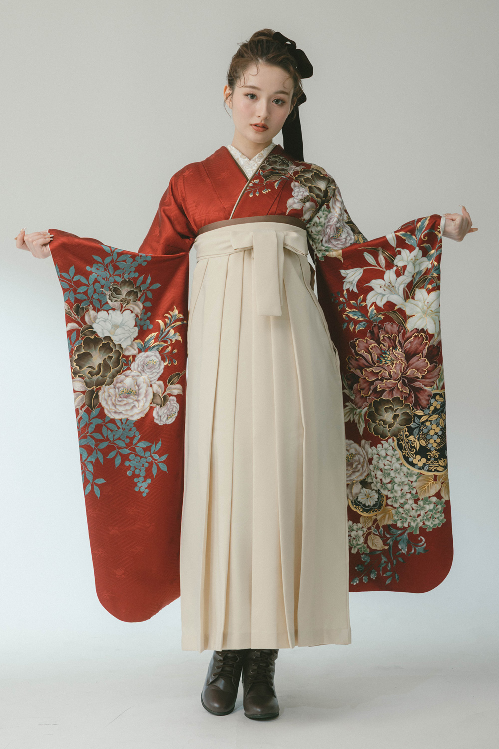 大雪輪 牡丹に百合 真紅 x パールホワイト