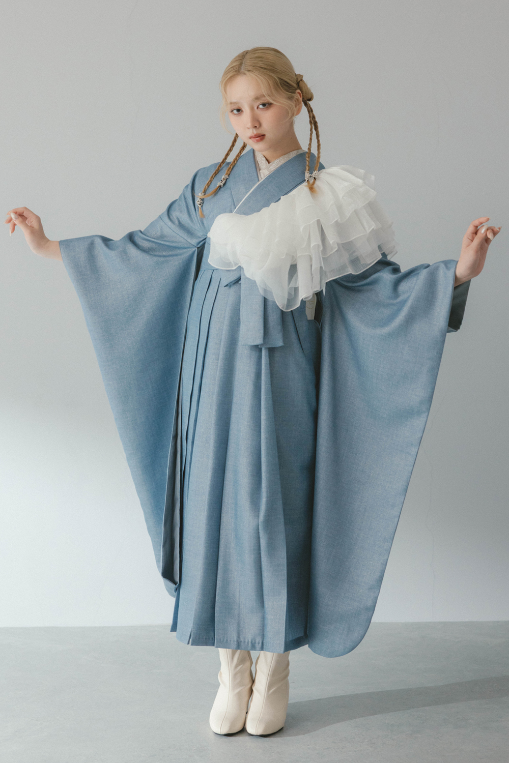 コーディネートに使用している髪飾り、帯飾り、巾着、草履、ブーツ、足袋、肌着はセット内容には含まれません。