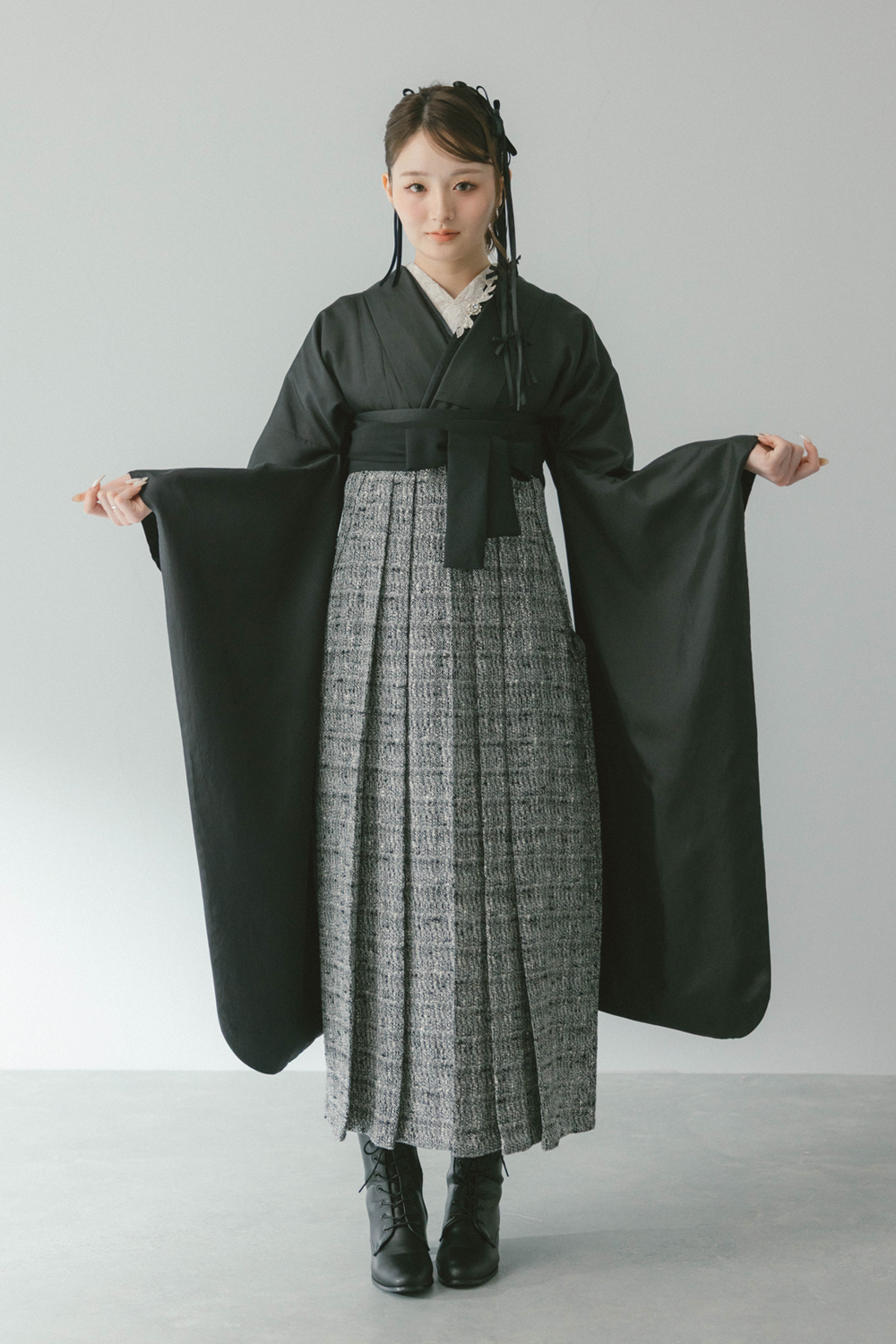 コーディネートに使用している髪飾り、帯飾り、巾着、草履、ブーツ、足袋、肌着はセット内容には含まれません。