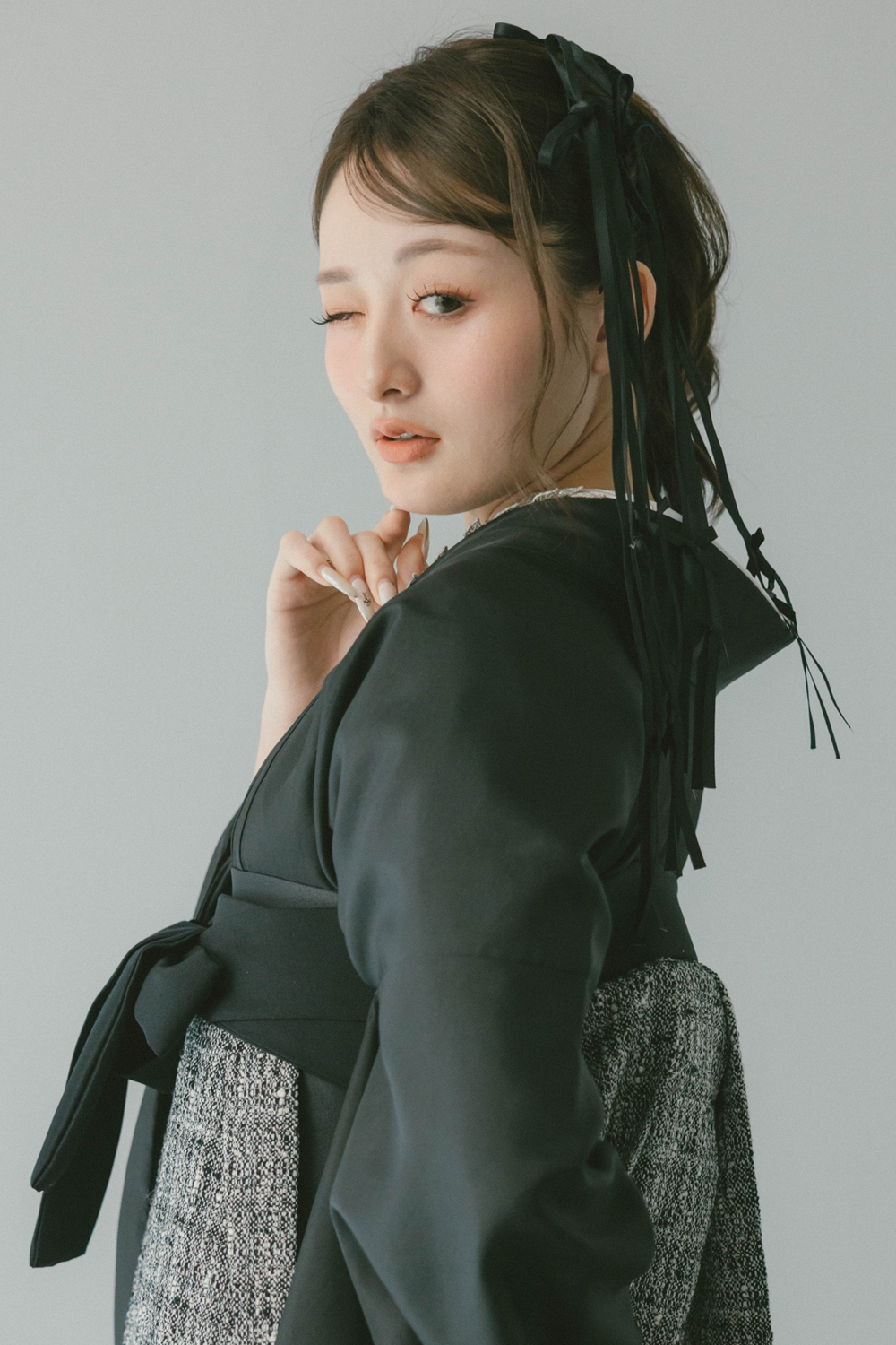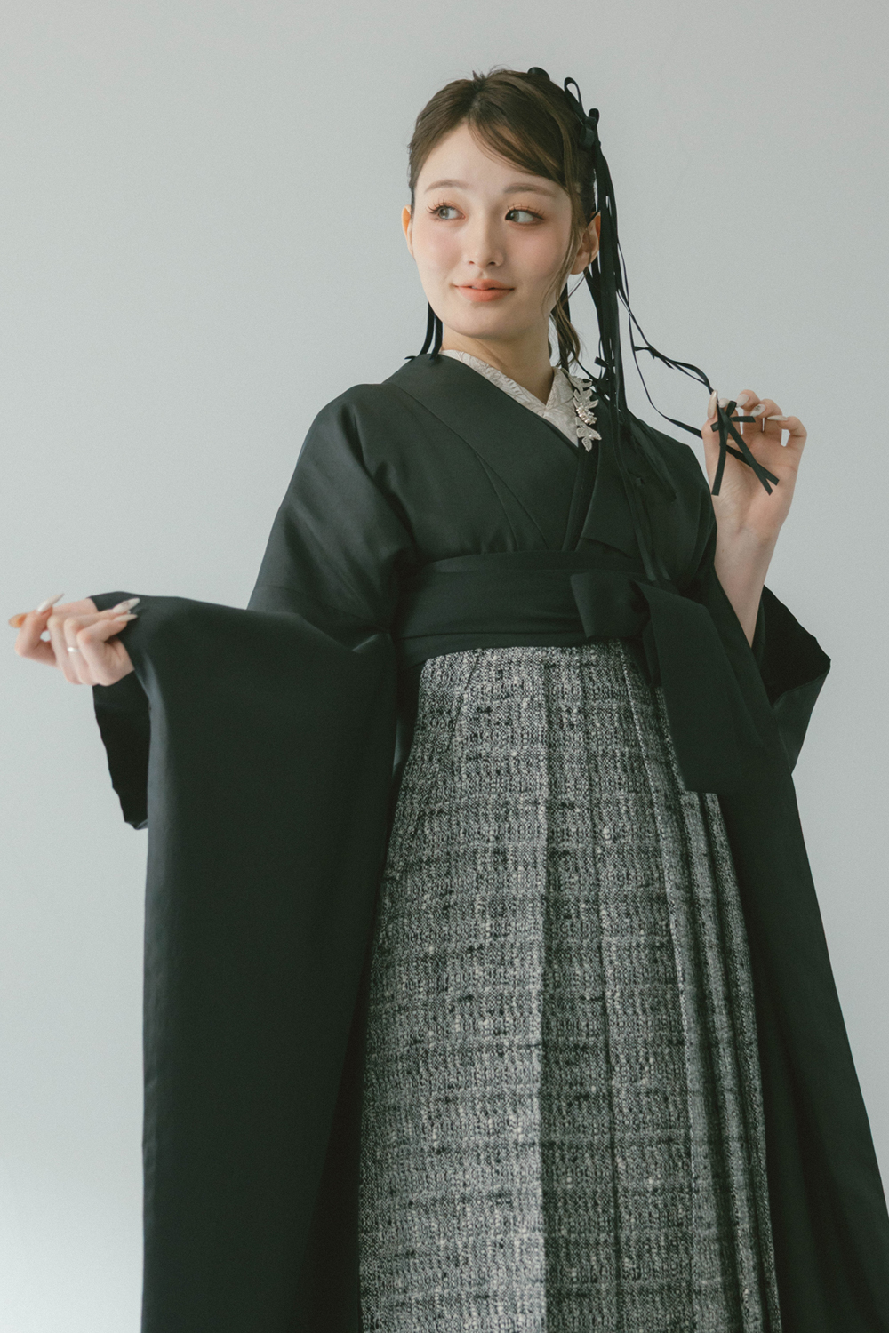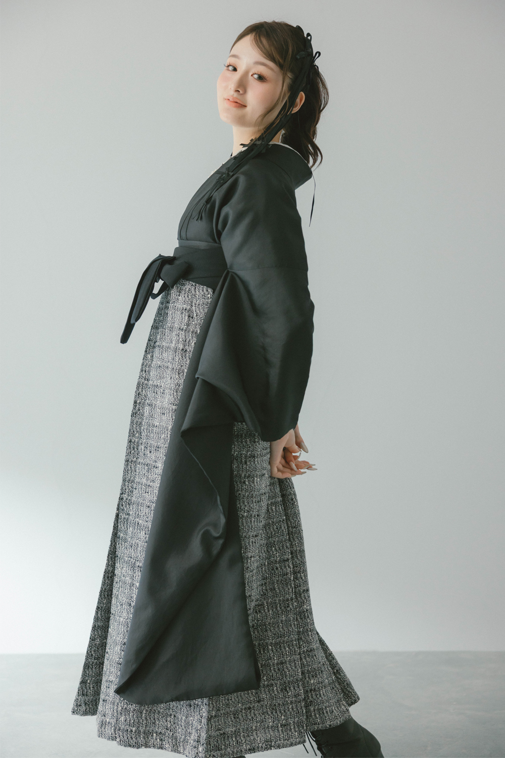 サテン ブラック x ツイード ブラック