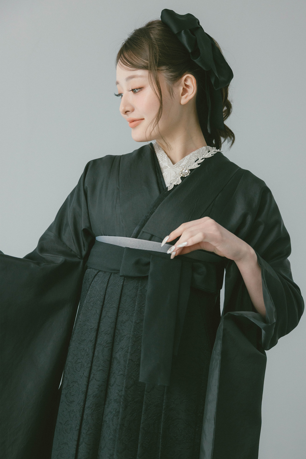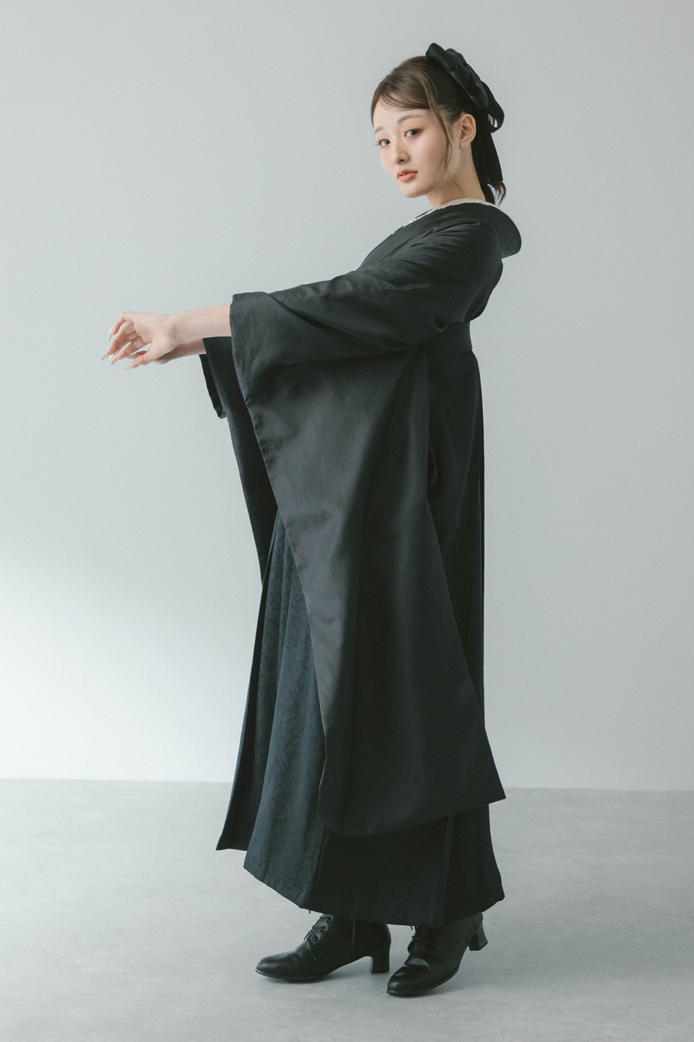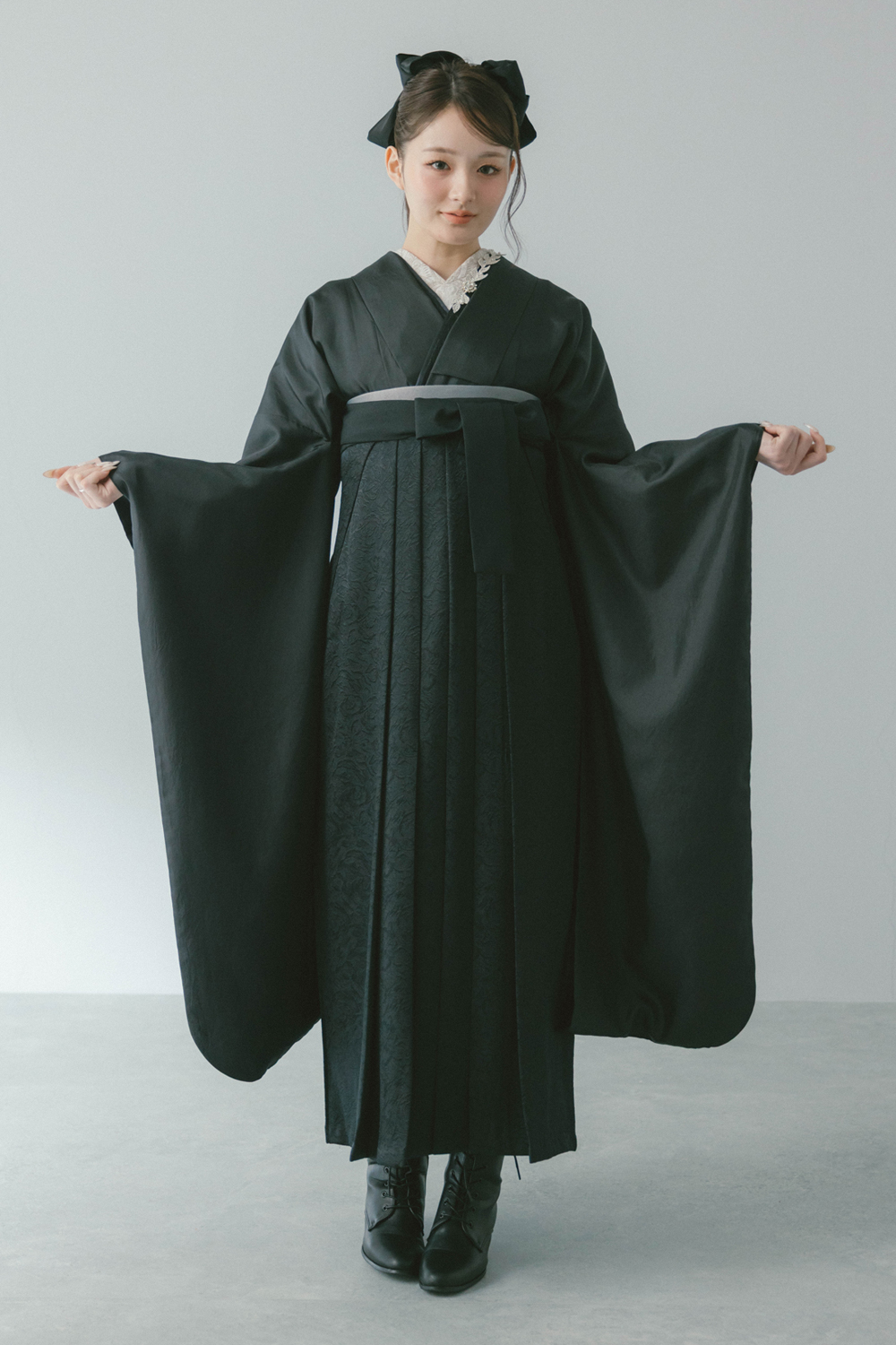 サテン ブラック x ジャガードローズ ブラック レンタル価格 ¥88,000(税込) コーデNo. 247 着物 サテン ブラック 袴 ジャガードローズ ブラック 説明 ※半衿は白色、伊達衿はラインストーン付きのものとなります (モデル着用の伊達衿とは異なります) セット内容 半衿、伊達衿、半幅帯は在庫状況によってはコーディネーターにお任せとなります。コーディネートに使用している髪飾り、帯飾り、巾着、草履、ブーツ、足袋、肌着はセット内容には含まれません。 こだわりたいあなたは・・・店舗またはオンラインでご相談下さい 袴のサイズをお選びください S(身長148㎝~)M(身長152㎝~)L(身長157㎝~)LL(身長162㎝~)3L(身長167㎝~170cm) 在庫なし ご利用予定日(卒業式当日の日付)を選択して下さい 2024年3月 前の月 次の月 日 月 火 水 木 金 土 解らない事やお悩みがある場合は、よくある質問をご確認ください。 よくある質問を見る レンタルオプション (セット販売)シフォンフリル×ワイン +¥14,300(税込) 販売のみ ※レンタルの取り扱いはございません ※必ずお衣裳とセットでご注文ください (セット販売)シフォンフリル×シルバー +¥14,300(税込) 販売のみ ※レンタルの取り扱いはございません ※必ずお衣裳とセットでご注文ください (セット販売)シフォンフリル×ブラック +¥14,300(税込) 販売のみ ※レンタルの取り扱いはございません ※必ずお衣裳とセットでご注文ください 巾着 +¥1,500(税込) デザインはスタイリストがコーディネートに合わせてお選びいたします。 厚底草履 +¥6,000(税込) フリーサイズ 椿の刺繍が入った厚底(前:約3cm・後:約6cm)の草履になります。色はお任せいただきます。 サイズ:フリーサイズ らくらくパック +¥5,000(税込) ・肌着 ・足袋(草履をレンタルされた場合のみ) ・衿芯 ・伊達締1本 ・腰紐3本 ・帯板 ・補正用タオル4枚 ※Premium Plan雅をご利用の方は、以下の内容となります ・肌着 ・足袋(草履をレンタルされた場合のみ) ・衿芯 ・伊達締2本 ・腰紐5本 ・帯板 ・補正用タオル4枚 安心サポート(保険) +¥2,000(税込) もしもの汚れも安心。汚れが生じてもそのままご返却していただけます。 この商品をカートに入れる