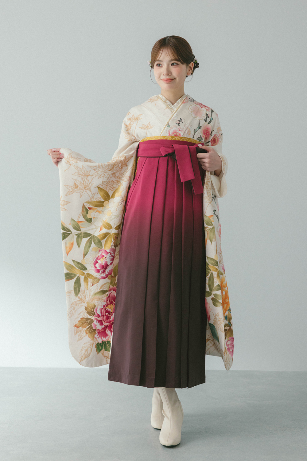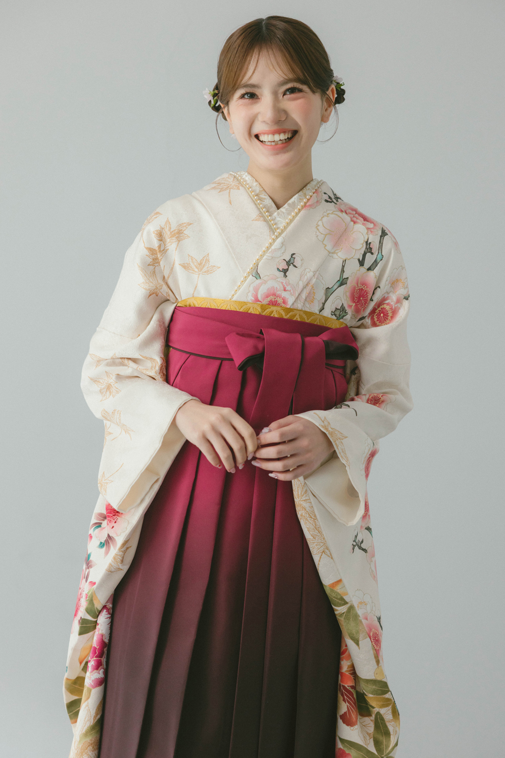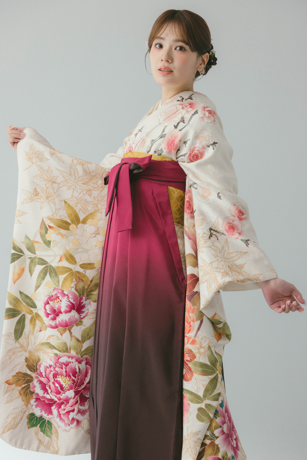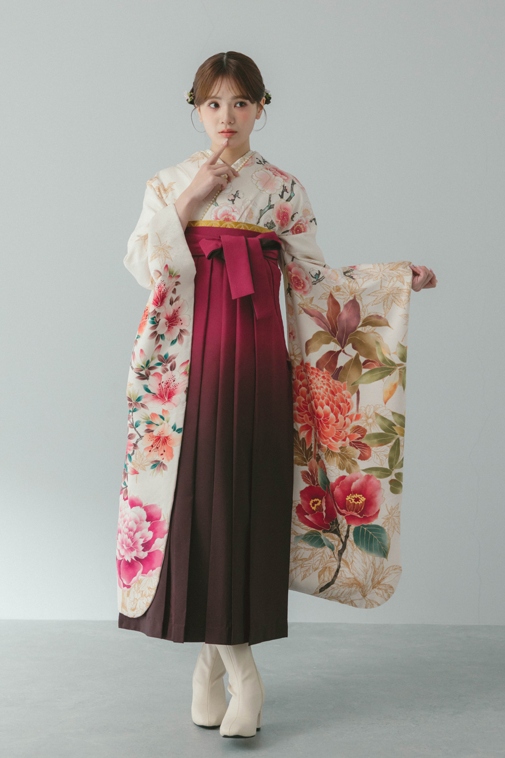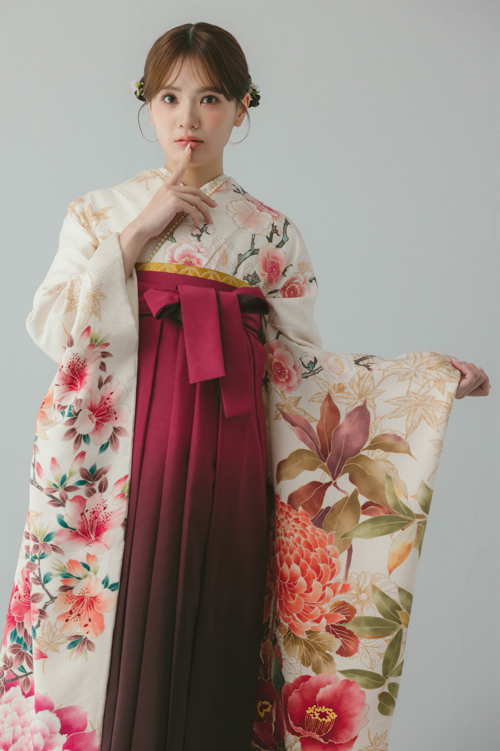ことえ クリーム x エンジグラデーション レンタル価格 ¥136,000(税込) ※身長150cm以上の方がご利用可能です (149cm以下の方はご利用いただけません) コーデNo. 雅82 着物 ことえ クリーム 袴 エンジグラデーション 説明 ※半衿は白色になります ※正絹振袖 セット内容 半衿、伊達衿、半幅帯は在庫状況によってはコーディネーターにお任せとなります。コーディネートに使用している髪飾り、帯飾り、巾着、草履、ブーツ、足袋、肌着はセット内容には含まれません。 こだわりたいあなたは・・・店舗またはオンラインでご相談下さい 袴のサイズをお選びください S(身長148㎝~)M(身長152㎝~)L(身長157㎝~)LL(身長162㎝~)3L(身長167㎝~170cm) 在庫なし ご利用予定日(卒業式当日の日付)を選択して下さい 2024年3月 前の月 次の月 日 月 火 水 木 金 土 解らない事やお悩みがある場合は、よくある質問をご確認ください。 よくある質問を見る レンタルオプション (セット販売)シフォンフリル×ホワイト +¥14,300(税込) 販売のみ ※レンタルの取り扱いはございません ※必ずお衣裳とセットでご注文ください (セット販売)シフォンフリル×ワイン +¥14,300(税込) 販売のみ ※レンタルの取り扱いはございません ※必ずお衣裳とセットでご注文ください (セット販売)シフォンフリル×シルバー +¥14,300(税込) 販売のみ ※レンタルの取り扱いはございません ※必ずお衣裳とセットでご注文ください (セット販売)シフォンフリル×ブラック +¥14,300(税込) 販売のみ ※レンタルの取り扱いはございません ※必ずお衣裳とセットでご注文ください 巾着 +¥1,500(税込) デザインはスタイリストがコーディネートに合わせてお選びいたします。 厚底草履 +¥6,000(税込) フリーサイズ 椿の刺繍が入った厚底(前:約3cm・後:約6cm)の草履になります。色はお任せいただきます。 サイズ:フリーサイズ 着付小物 +¥5,000(税込) ・肌着 ・足袋(草履をレンタルされた場合のみ) ・衿芯 ・伊達締1本 ・腰紐3本 ・帯板 ※Premium Plan雅をご利用の方は、以下の内容となります ・肌着 ・足袋(草履をレンタルされた場合のみ) ・衿芯 ・伊達締2本 ・腰紐5本 ・帯板 ※補正用タオルはレンタル内容に含まれておりません ご自身でご準備ください 安心サポート(保険) +¥2,000(税込) もしもの汚れも安心。汚れが生じてもそのままご返却していただけます。 この商品をカートに入れる