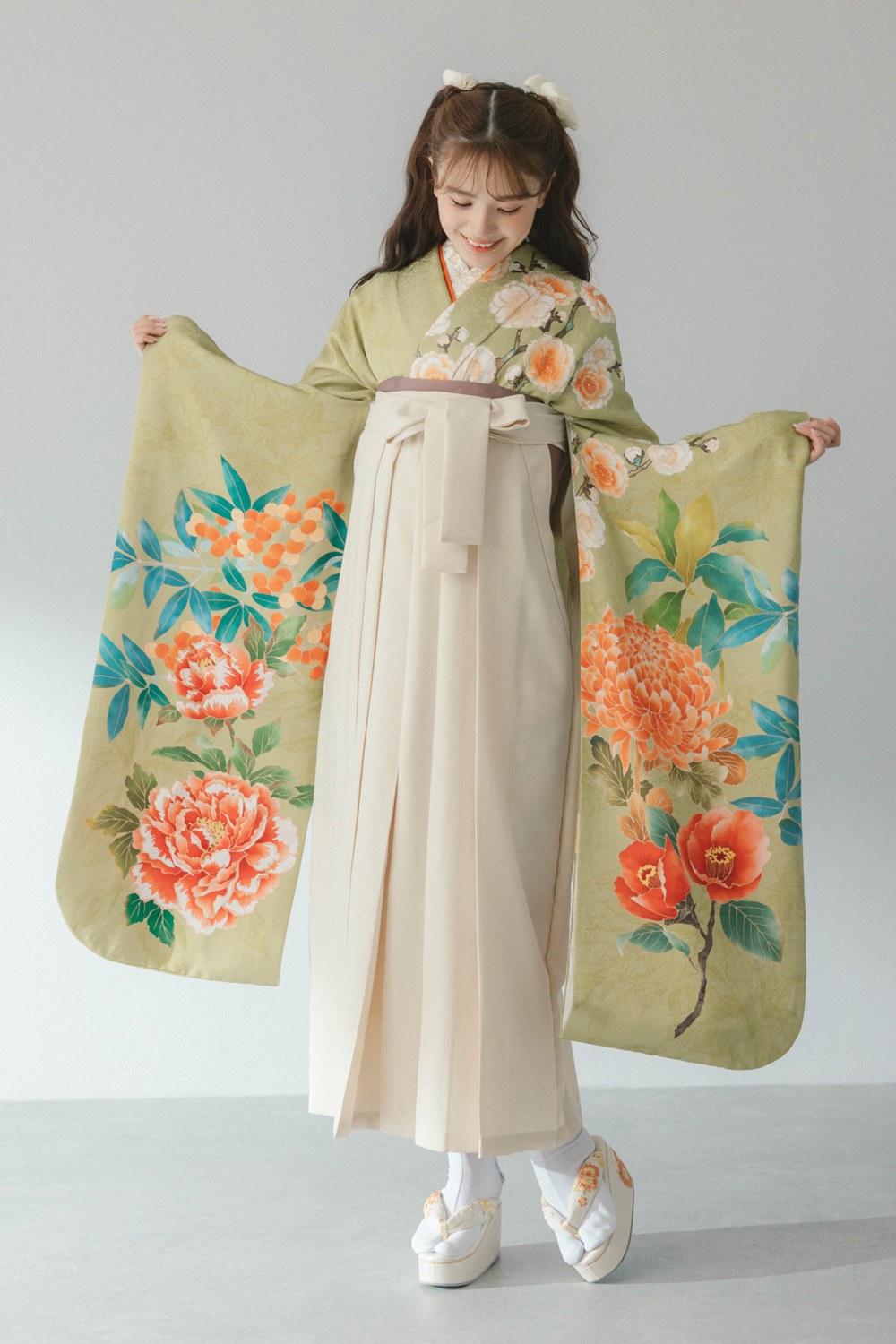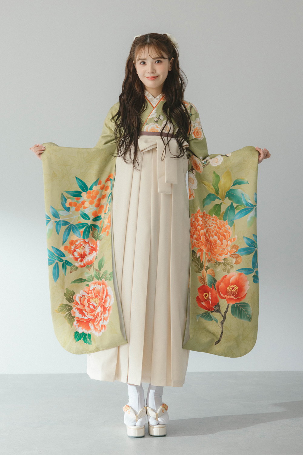ことえ ひわ x パールホワイト レンタル価格 ¥134,000(税込) ※身長150cm以上の方がご利用可能です (149cm以下の方はご利用いただけません) コーデNo. 雅83 着物 ことえ ひわ 袴 パールホワイト 説明 ※半衿は白色になります ※正絹振袖 セット内容 半衿、伊達衿、半幅帯は在庫状況によってはコーディネーターにお任せとなります。コーディネートに使用している髪飾り、帯飾り、巾着、草履、ブーツ、足袋、肌着はセット内容には含まれません。 こだわりたいあなたは・・・店舗またはオンラインでご相談下さい 袴のサイズをお選びください S(身長148㎝~)M(身長152㎝~)L(身長157㎝~)LL(身長162㎝~)3L(身長167㎝~170cm) 在庫なし ご利用予定日(卒業式当日の日付)を選択して下さい 2024年3月 前の月 次の月 日 月 火 水 木 金 土 解らない事やお悩みがある場合は、よくある質問をご確認ください。 よくある質問を見る レンタルオプション (セット販売)シフォンフリル×ホワイト +¥14,300(税込) 販売のみ ※レンタルの取り扱いはございません ※必ずお衣裳とセットでご注文ください (セット販売)シフォンフリル×ワイン +¥14,300(税込) 販売のみ ※レンタルの取り扱いはございません ※必ずお衣裳とセットでご注文ください (セット販売)シフォンフリル×シルバー +¥14,300(税込) 販売のみ ※レンタルの取り扱いはございません ※必ずお衣裳とセットでご注文ください (セット販売)シフォンフリル×ブラック +¥14,300(税込) 販売のみ ※レンタルの取り扱いはございません ※必ずお衣裳とセットでご注文ください 巾着 +¥1,500(税込) デザインはスタイリストがコーディネートに合わせてお選びいたします。 厚底草履 +¥6,000(税込) フリーサイズ 椿の刺繍が入った厚底(前:約3cm・後:約6cm)の草履になります。色はお任せいただきます。 サイズ:フリーサイズ 着付小物 +¥5,000(税込) ・肌着 ・足袋(草履をレンタルされた場合のみ) ・衿芯 ・伊達締1本 ・腰紐3本 ・帯板 ※Premium Plan雅をご利用の方は、以下の内容となります ・肌着 ・足袋(草履をレンタルされた場合のみ) ・衿芯 ・伊達締2本 ・腰紐5本 ・帯板 ※補正用タオルはレンタル内容に含まれておりません ご自身でご準備ください 安心サポート(保険) +¥2,000(税込) もしもの汚れも安心。汚れが生じてもそのままご返却していただけます。 この商品をカートに入れる